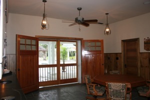 An old barn converted into a pool cabana and space for family gatherings.